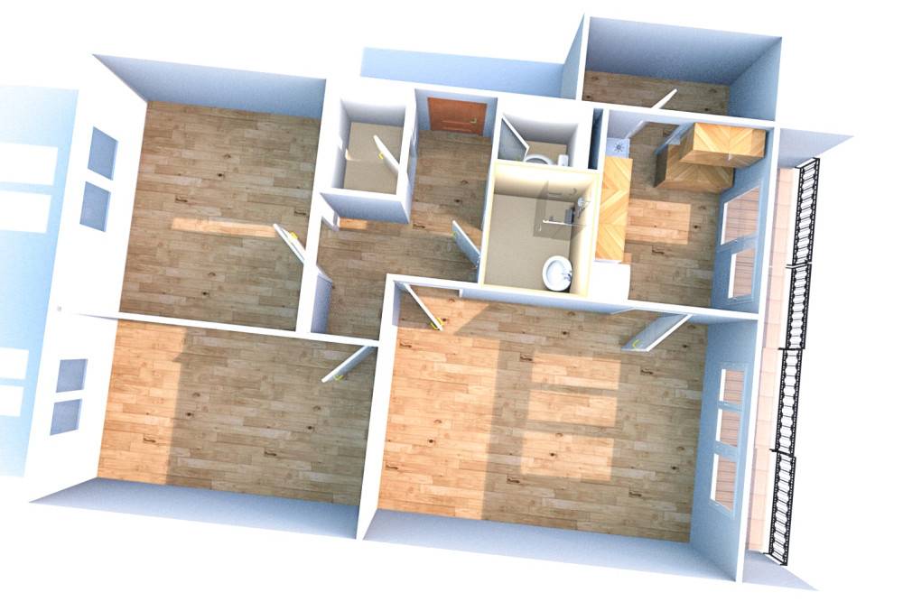 + vstup na loggiu z kuchyne, pôvodne vstup aj z obývacej izby (dá sa obnoviť)